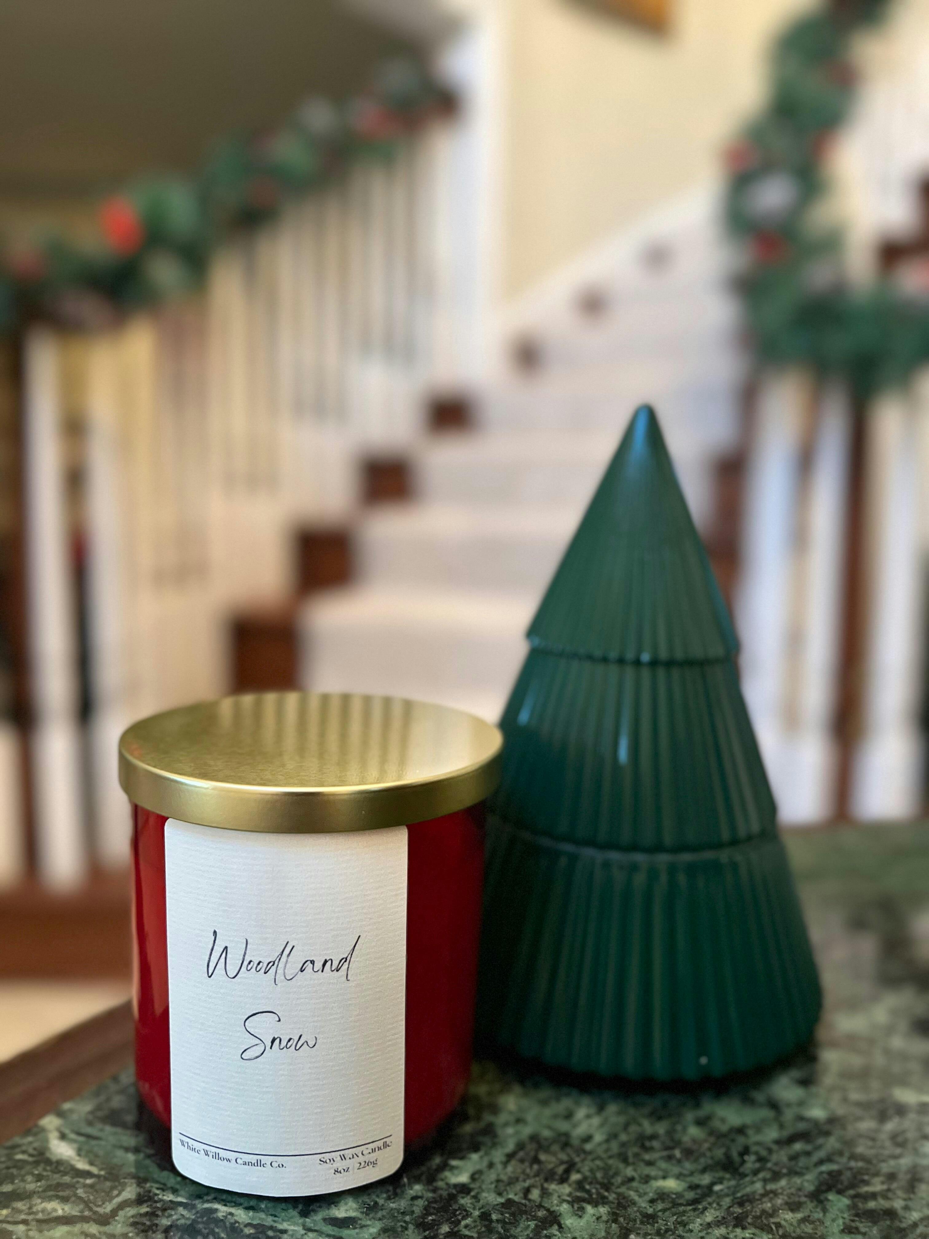 Mint, cypress, sage, and cedar create the feeling of a peaceful winter walk through snow-dusted trees. The opening is cool and refreshing, easing into a clean, woodsy calm. Lightly frosted, soothing, and perfect for the holidays without being too bold.